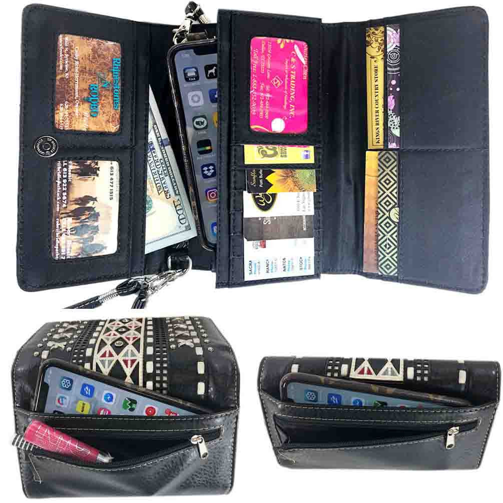 Multi Functional Sugar Skull Embossed Trifold Clutch Crossbody Wallet